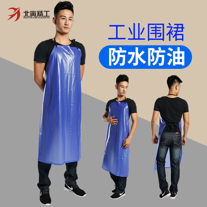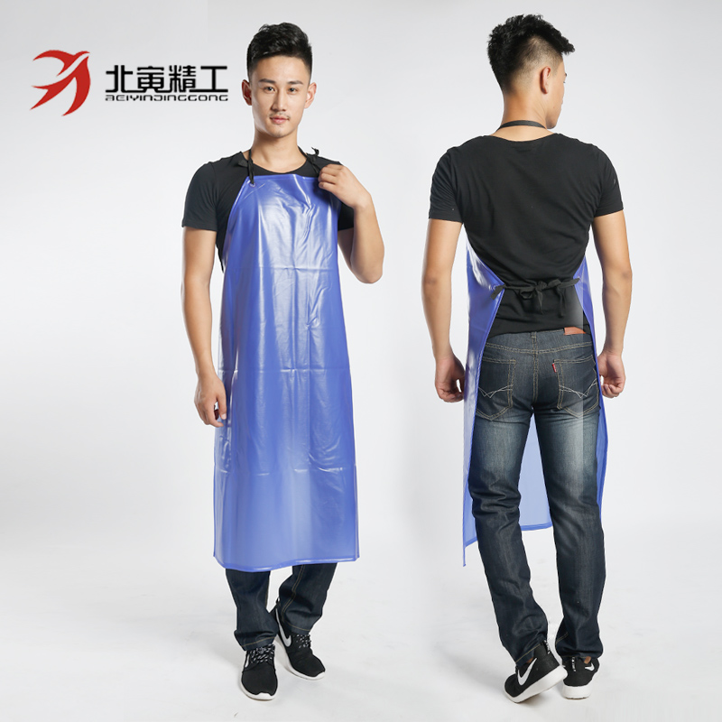 Blue PVC waterproof apron thickened and lengthened oil-resistant acid-alkali-resistant aquatic food work clothes bib overalls custom-made