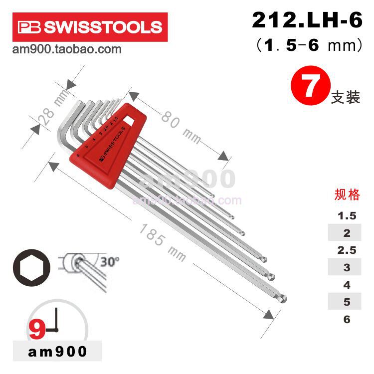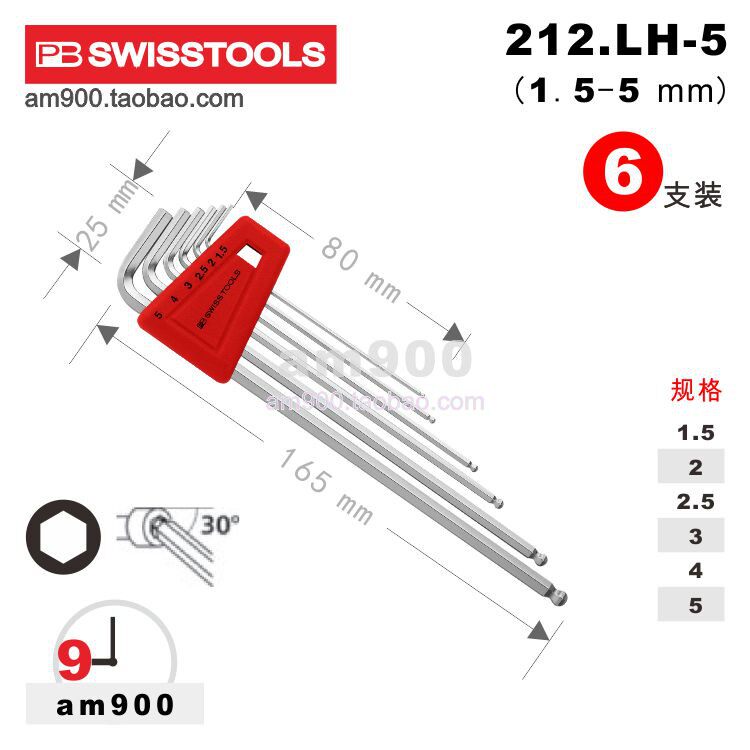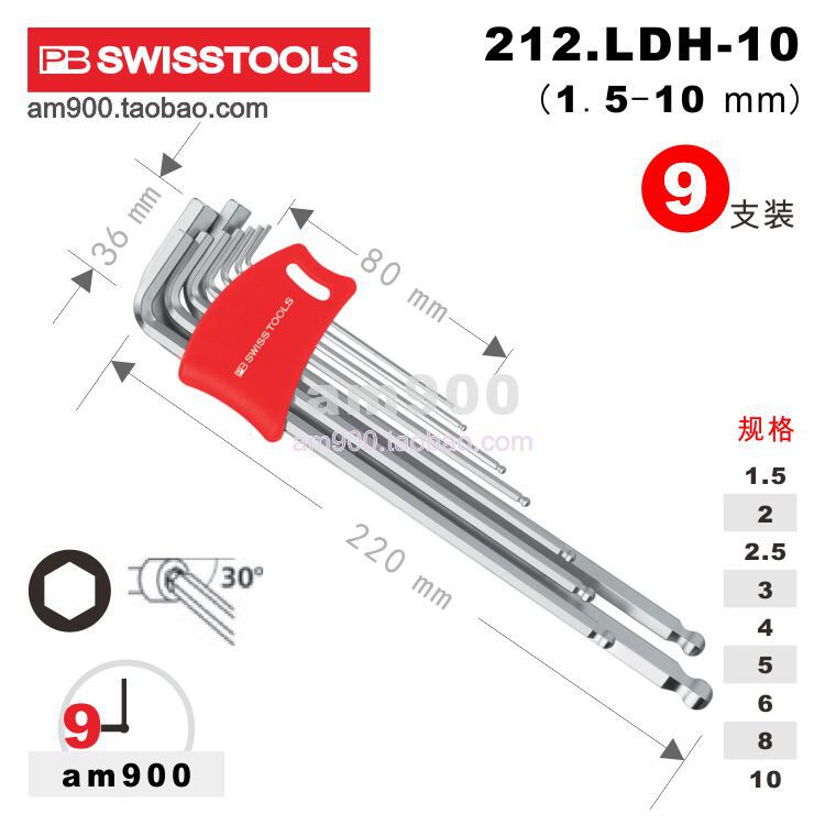 Swiss PB hex wrench PB 212 LH Imported metric lengthened ball head set 212 LH-5 6 8 10