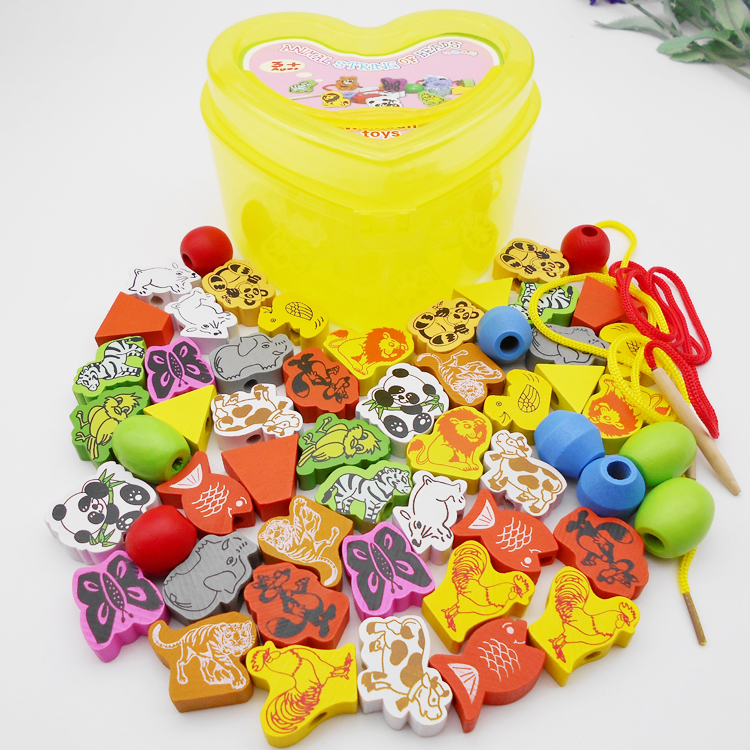 Kindergarten Baby Infant Child Early Lessons Intellectual Strings Pearl Heart-shaped Animal Fruit Wooden Building Blocks Toys