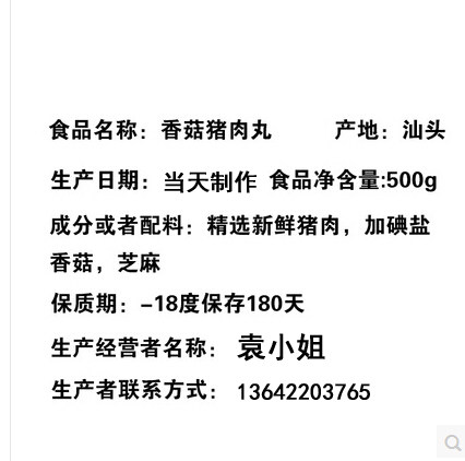 Selected fresh pork iodized salt Shiitake mushrooms Sesame seeds