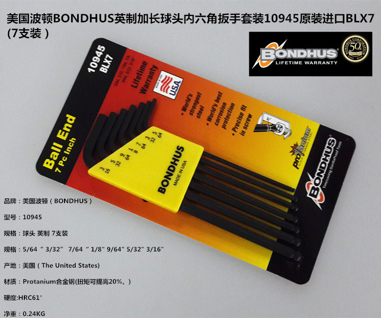 US imports BONDUS Bolton 10945 ball head Inhexagonal wrench suit fake one-lose ten