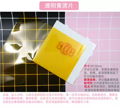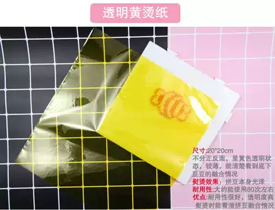 Imported auxiliary hot stamping paper(5 sheets)Domestic thin hot stamping paper(5 sheets)Fully transparent large hot stamping sheet(1 sheet)Fully transparent hot stamping sheet(5 sheets)Transparent yellow hot stamping sheet(1 sheet)Oversized hot stamping paper(30*40cm)