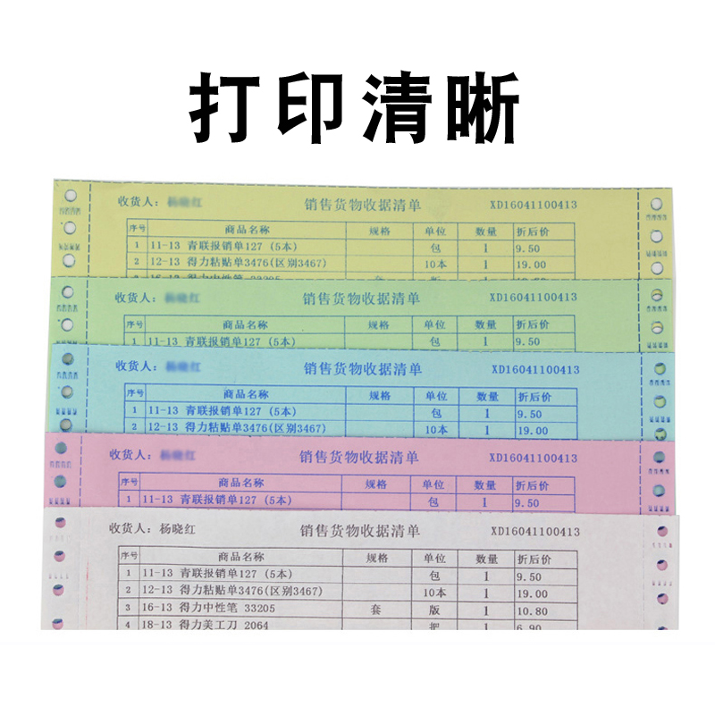 (1000 pages)Qinglian computer copy paper three-in-two-in-one 240*140 fixed tear edge color three-four-five-in-one making list with paper needle in and out of the warehouse delivery invoice 241mm