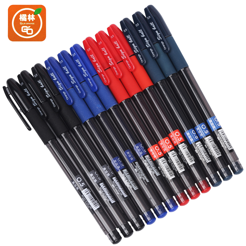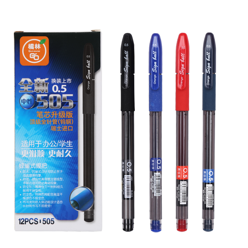 Orange forest gel pen J505 signature pen water-based ballpoint pen honeycomb grip neutral refill black 0 5mm full needle tube student water-based pen exam red teacher red pen set blue and black
