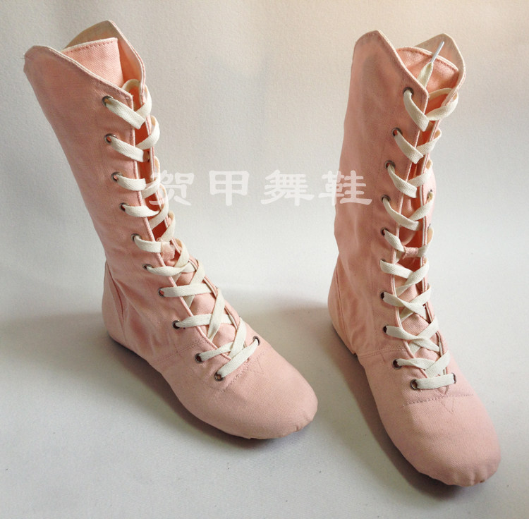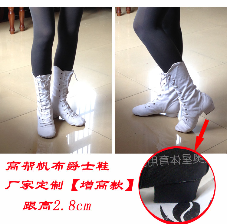 Belt heel high cylinder jazz shoes Canvas Soft Bottom Dance Shoes High Heel Silo Jazz Shoes High Silo Folk Modern Dance Shoes