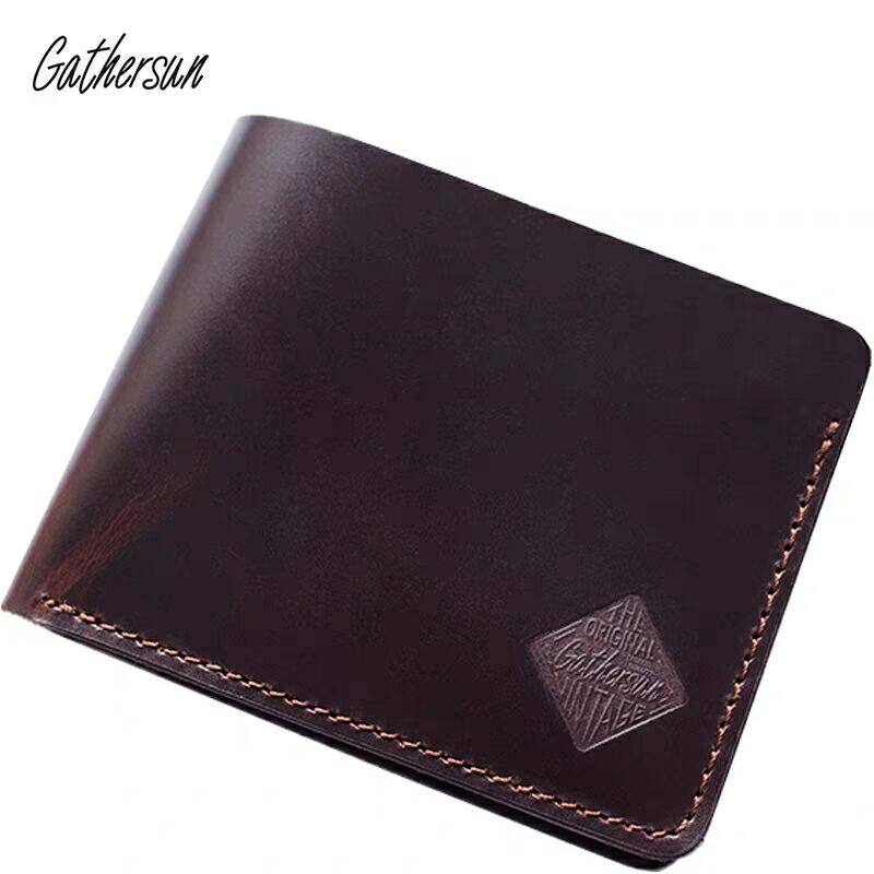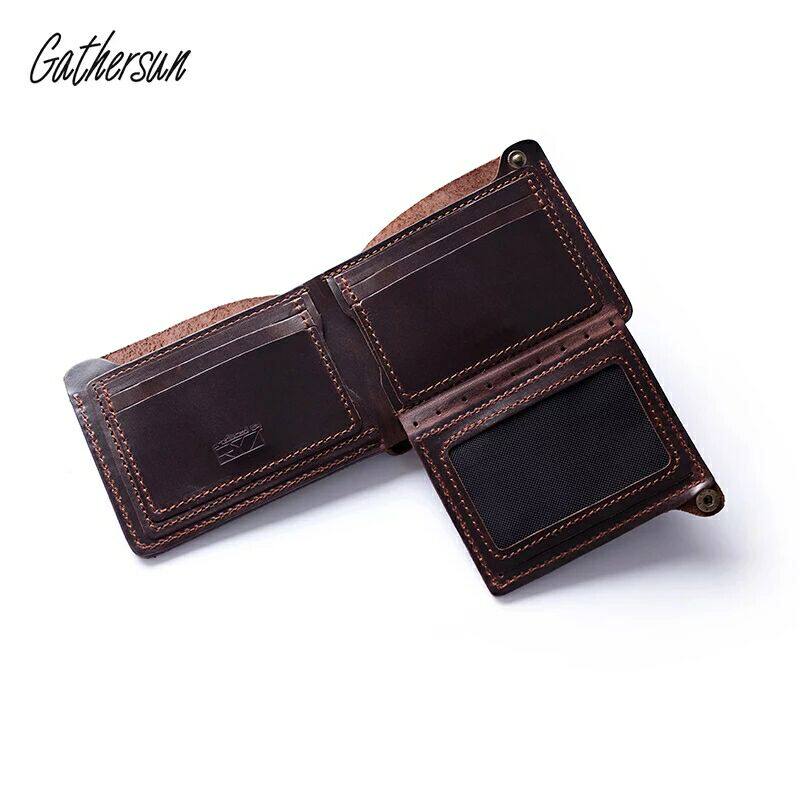 Handmade Cow Leather Business Men's Short Wallet Genuine Leather Cross Section Versatile Retro Multi-Position Leather Clip Trend Wallet