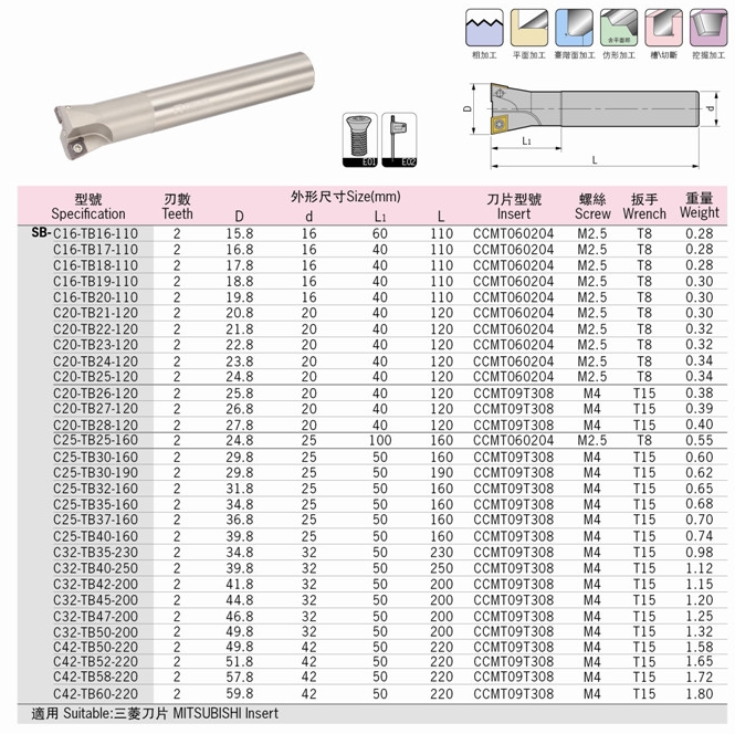 Decker fixed coarse boring knife SB-TB16 17 18 18 20 20 21 22 to TB60 coarse boring knife lever 0 8