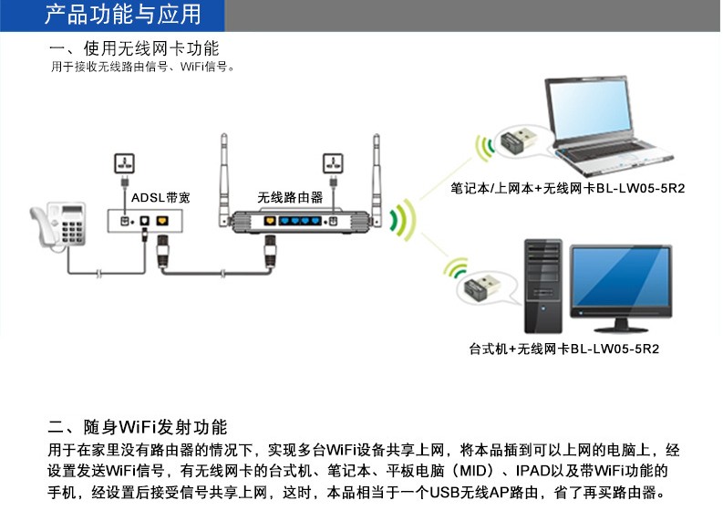 Desktop computer notebook WIFI routing USB wireless network card receiver cable transfer AP USB network card