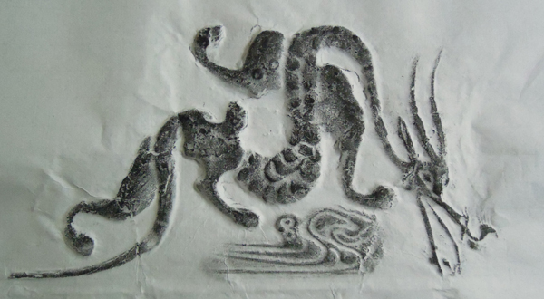 Longteng Shengshi Family Guochang (Han Brick Rubbings) Original Rubbing of Qinglong Portrait Brick in Eastern Han Dynasty The frame is for reference only