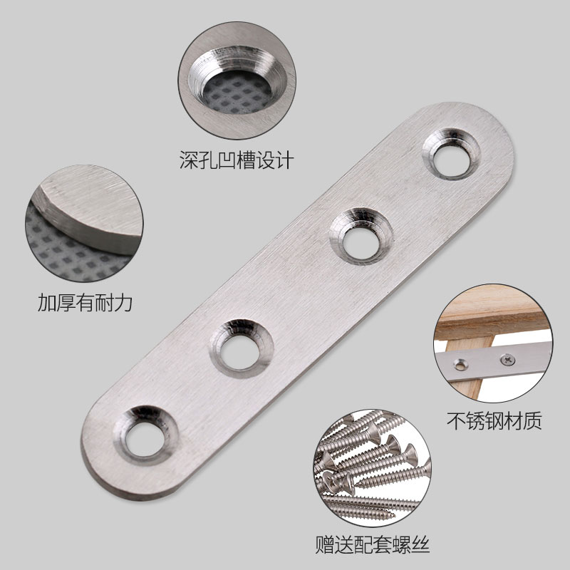 Stainless steel straight piece connection piece connection code one word straight piece iron piece flat angle piece corner code furniture fixed 180 degree code