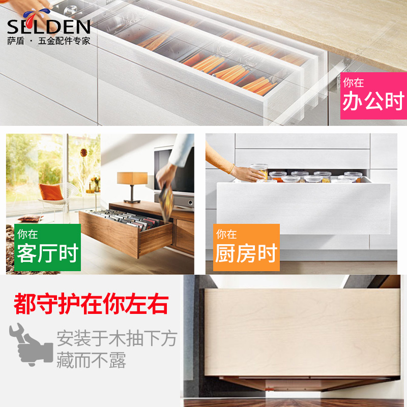 Selden Sardin buffer hidden slide track pulls out three track damping two and a half pull out of the bottom draw