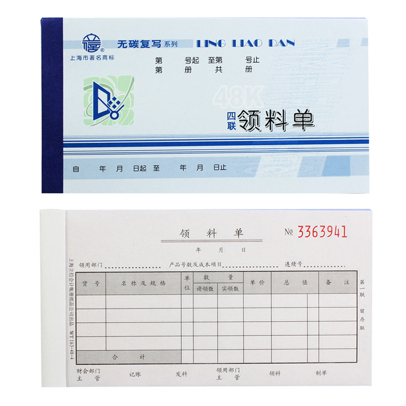 Lixin Collar Bill Triple No Carbon Rewritten Four United Workshop Collar Bill Handwritten General Financial Supplies