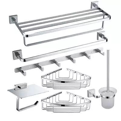 Towel rack towel bar single towel bar double coat hook toilet brush toilet paper holder basket double basket multifunctional basket three sets of A three-piece B three-piece C