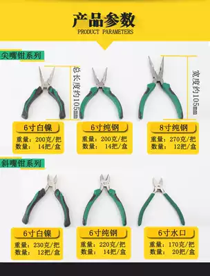 Pure Steel 6 inch pointed nose pliers pure steel 8 inch pointed nose pliers Pure Steel 6 inch oblique pliers White Nickel 6 inch oblique pliers White Nickel 6 inch oblique pliers White Nickel 6 inch pointed nose pliers chrome vanadium steel 6 inch Watermouth pliers