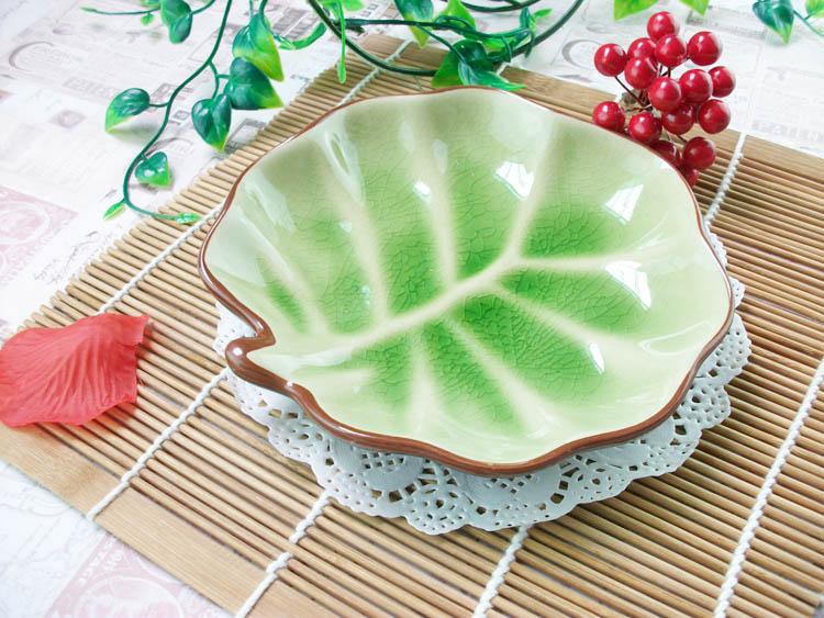 Foreign trade export ice-cracked glaze leaf plate fruit green snack snack plate 6 inch leaf plate