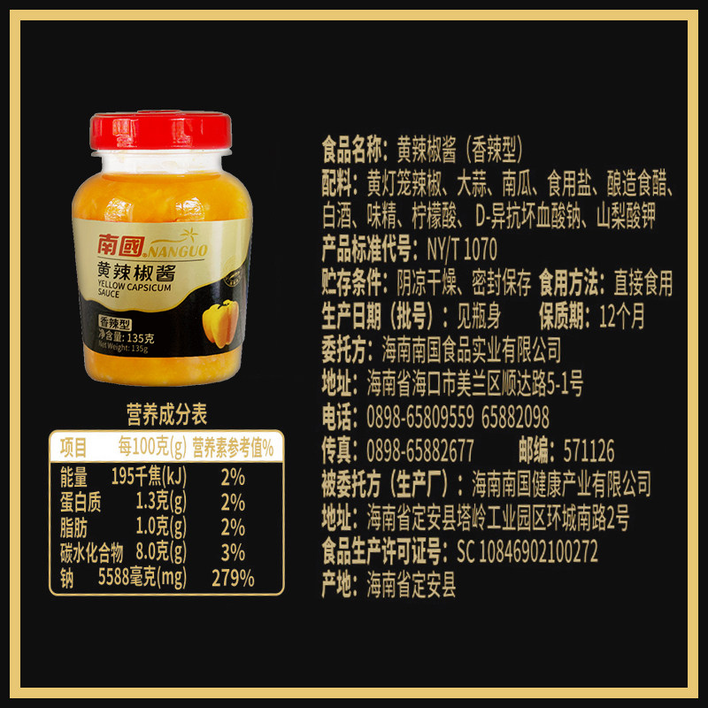 (Coupon redemption 149 minus 80)Yellow Chili Sauce 135g Spicy Nanguo Yellow bell pepper chili sauce sour soup