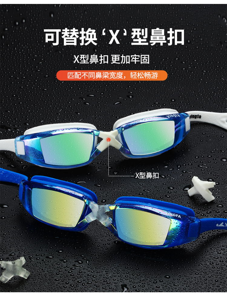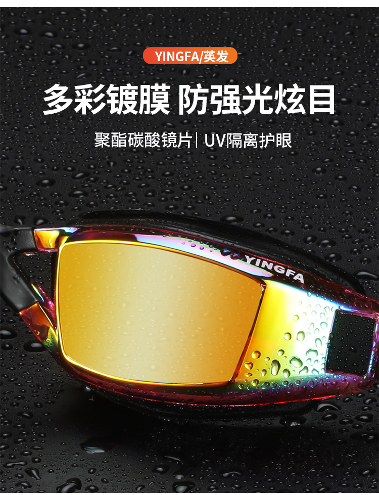 English Hair Swimming Goggles Big Frames Casual Colorful anti-UV anti-fog plating swimming glasses Y1300AF (V)