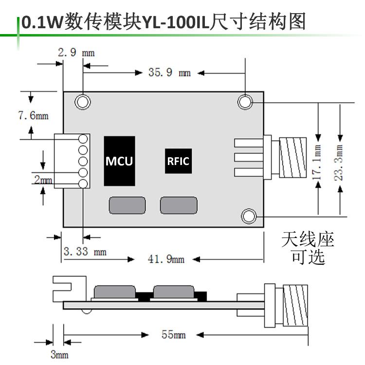 YL-100IL long distance wireless data transmission radio 433M serial port single chip 232 485 wireless transceiver module
