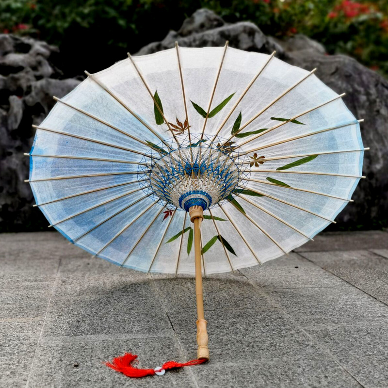 Flowers ancient style oil paper umbrella Handmade women rainproof sunscreen Bamboo leaves Maple leaves practical full wear Luzhou traditional oil paper umbrella