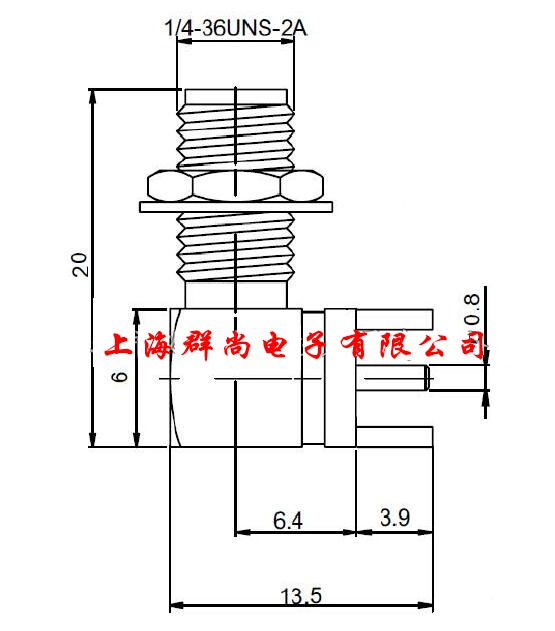 Total length 20MM tooth length 14MM SMA-KWE lengthened waterproof bent female inner screw inner hole SMA seat