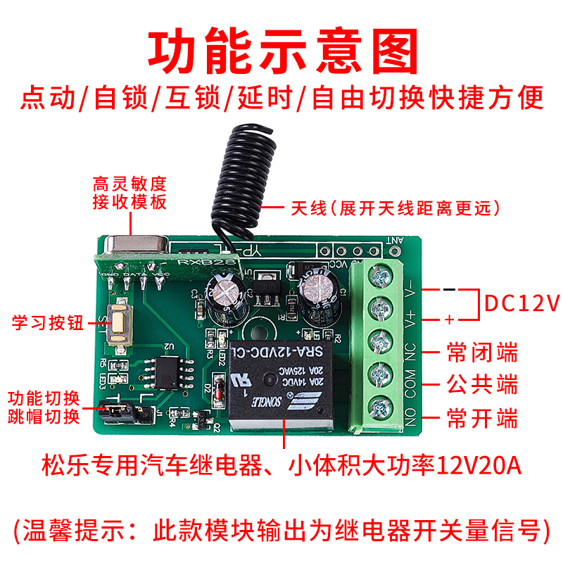 Single-superheterodyne long-range DC12V receiver (without remote control)