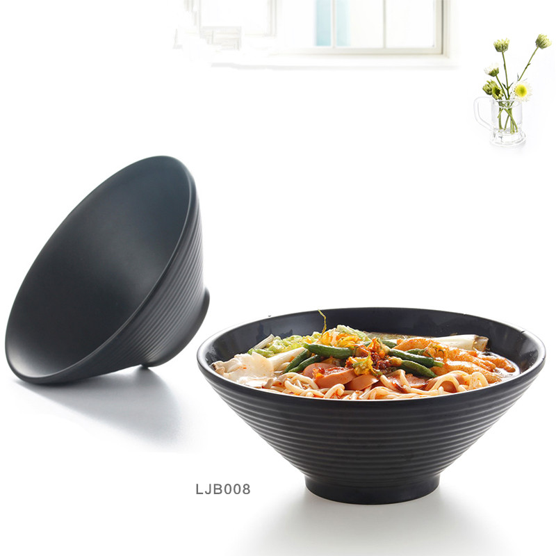 South Korea Style Creative Pull Noodles Bowl Melamine Plastic Imitation Porcelain Black Frosted Large Beef Noodle Bowl Cutlery Cutlery Commercial