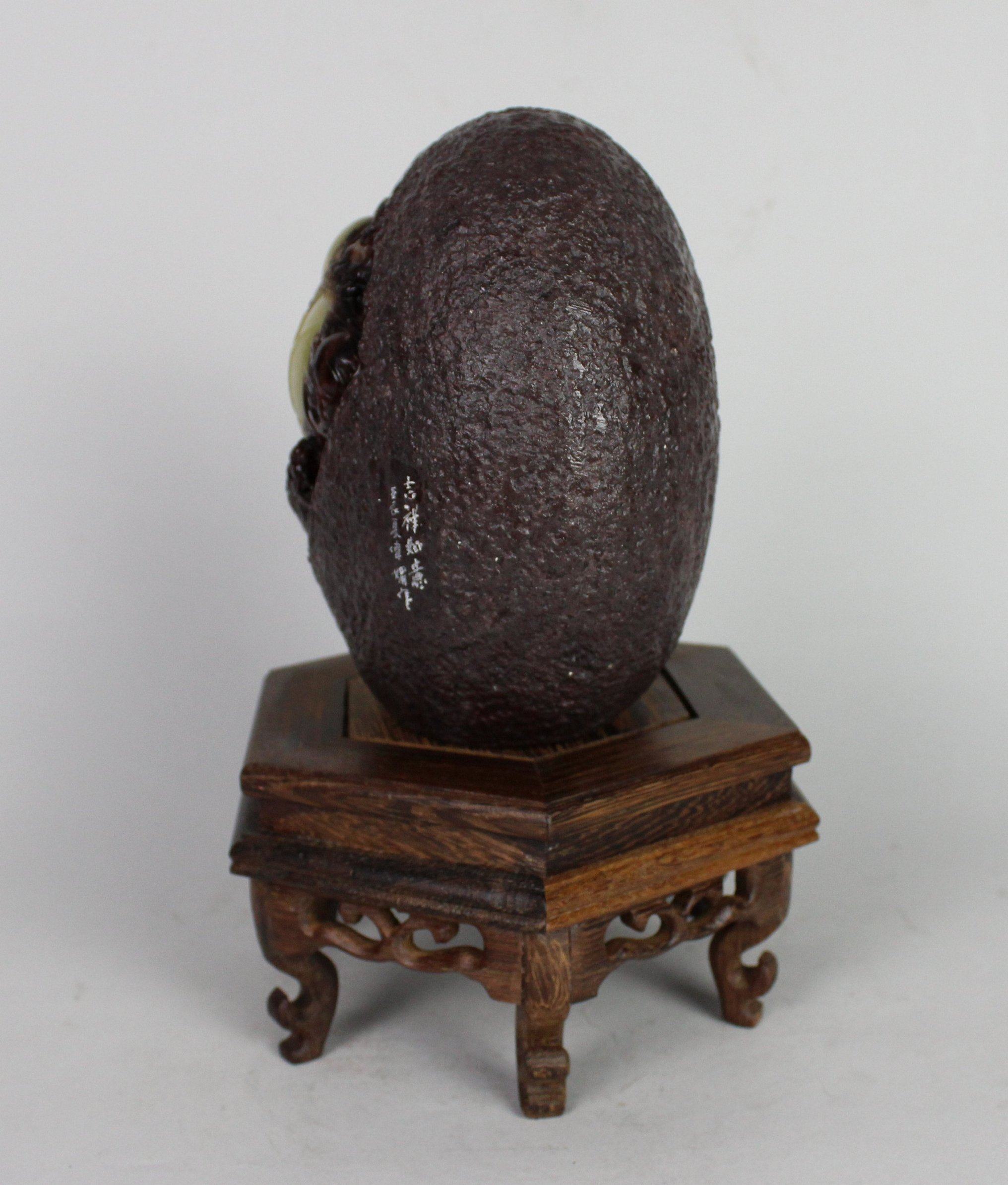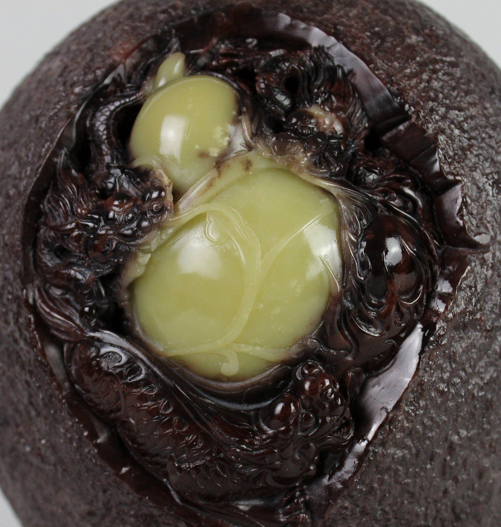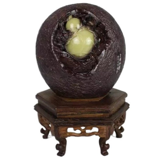 Qingtian Zhoucun dragon egg stone carving ornaments auspicious Ruyi master works Qiyu all natural old lion ball through round