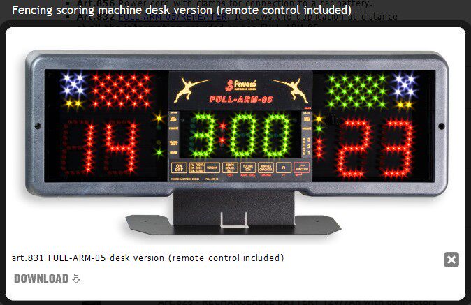 Wireless remote control features both scores increase and decrease the remote control that can be connected to the repeating lights 2021 in compliance with the Sabre chronograph rules