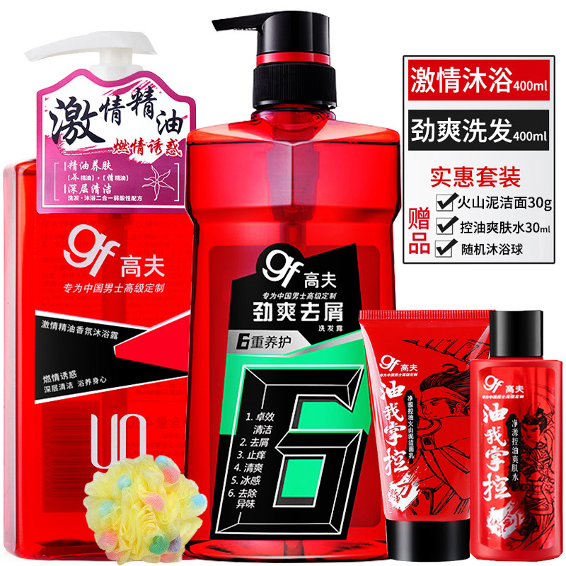 Gf Goff men's skin care products set shower gel liquid silicone-free oil control dandruff shampoo 400ml refreshing itching