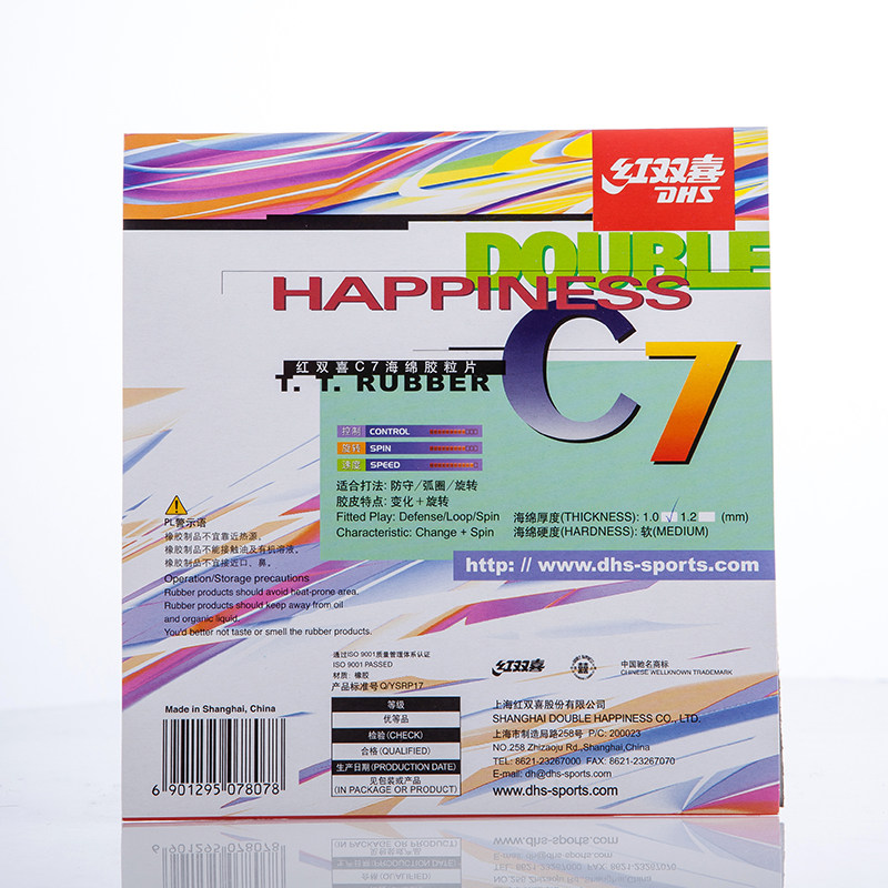 (Table Tennis Online) Licensed DHS Double Happiness C 7 (C-7) C7 Table Tennis Positive Rubber