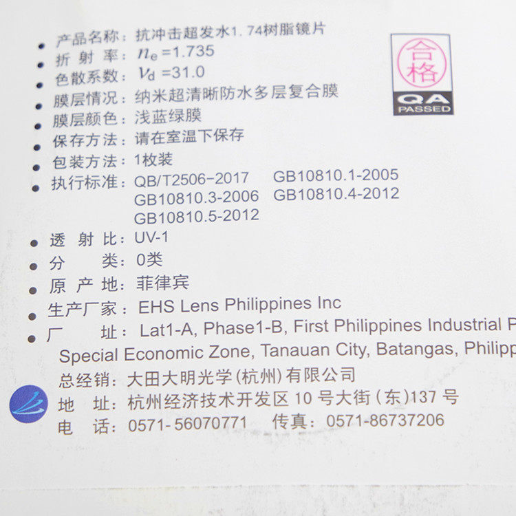 1 74 ultra - thin non - spherical glasses anti - blue - ray anti - radiation high myopia - scattered resin Damin Amia
