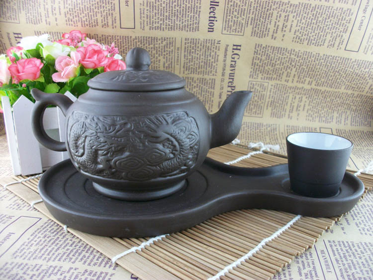 Purple Pottery Tea Tea 1 teapot 1 tea chassis 1 tea cup single tea set of Chaozhou Longrim teapot
