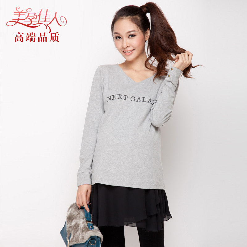 Beauty Pregnancy Canon Pregnancy Woman Dress New Korean Version Pregnant Woman Blouse Fashion Logo V Collar Pregnant Woman T-shirt 1516
