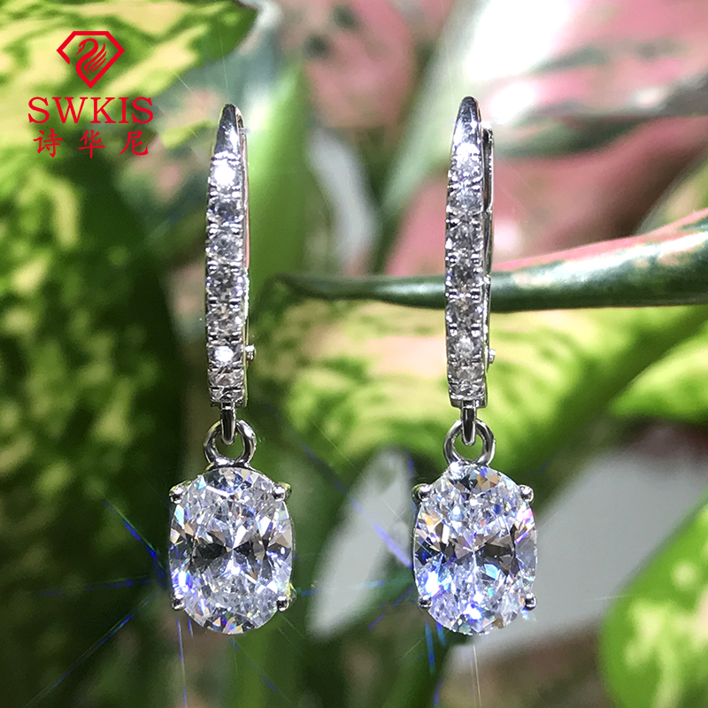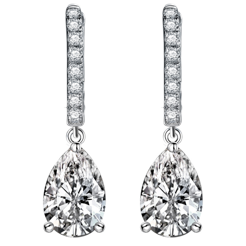 Inlaid drilling pear-shaped small ear pendant female short section 925 pure silver drop earrings set 18K gold mosanstone simulation diamond earshot