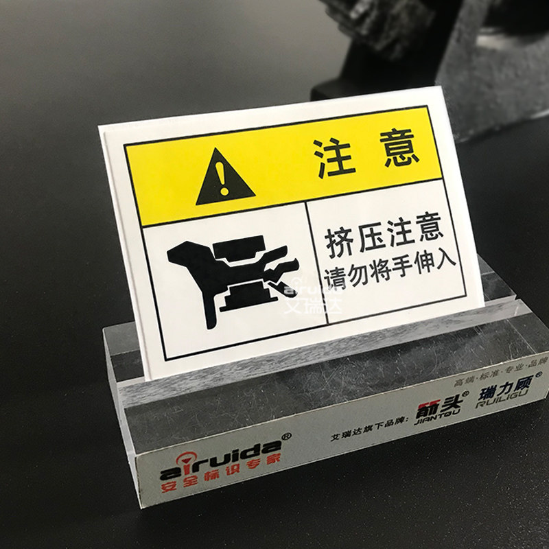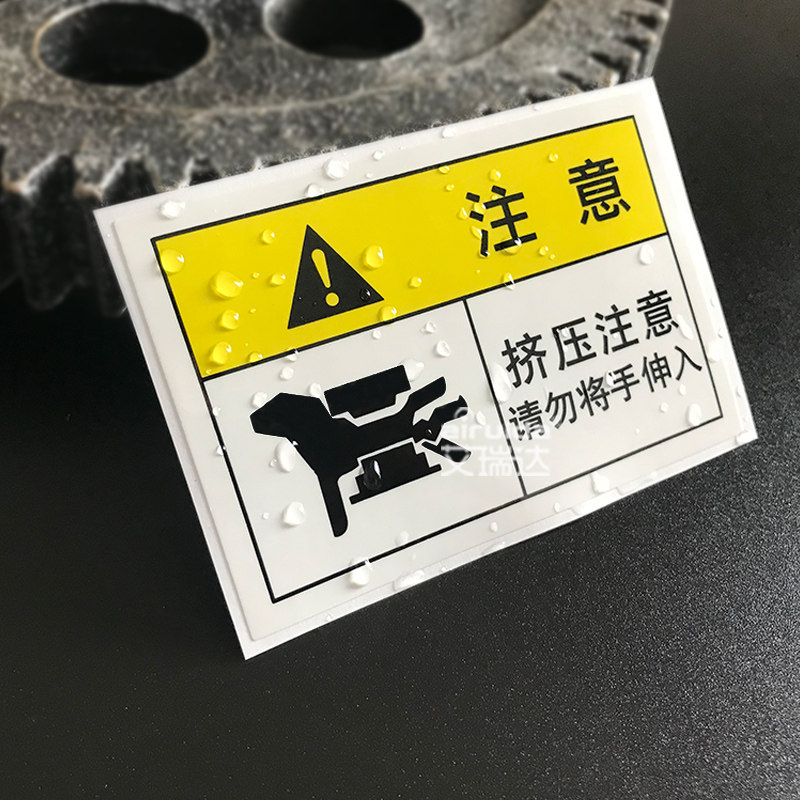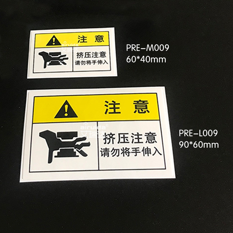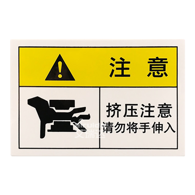 Ereda squeezing attention to warning marking mechanical safety sign beware of clip hand label adhesive sticker PRE-L009
