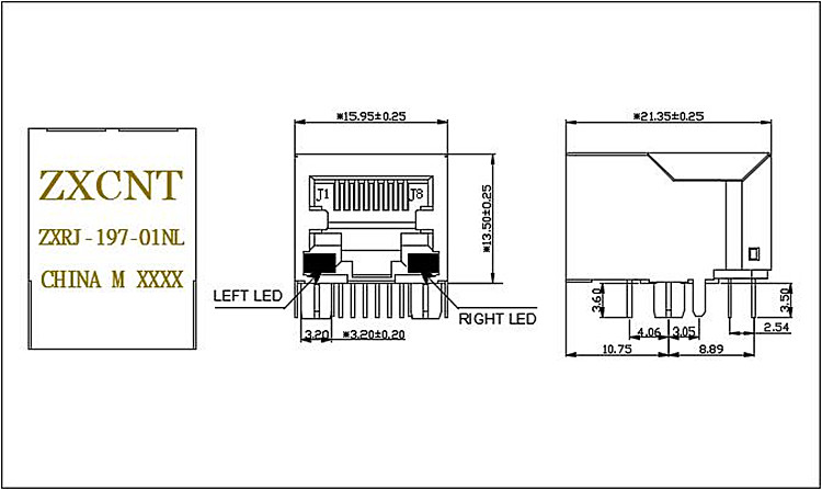 RJ45 interface 100 Megabit transformer socket POE function ac 90 degrees led socket ZXRJ-197-01NL