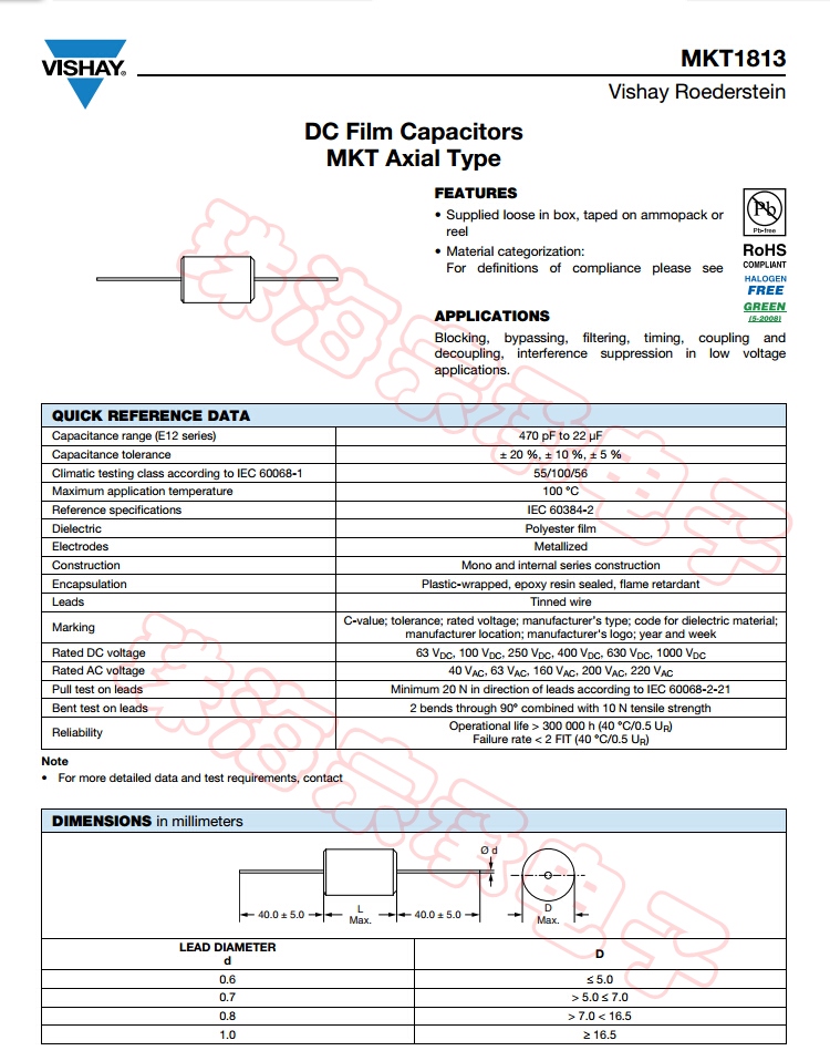 Import Portugal 3 3uF 63V ERO MKT1813 3u3 axial film capacitor VISHAY 335
