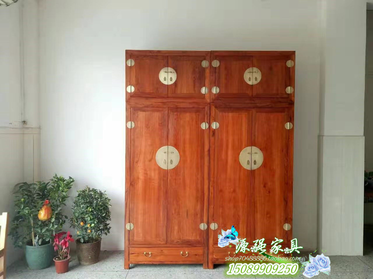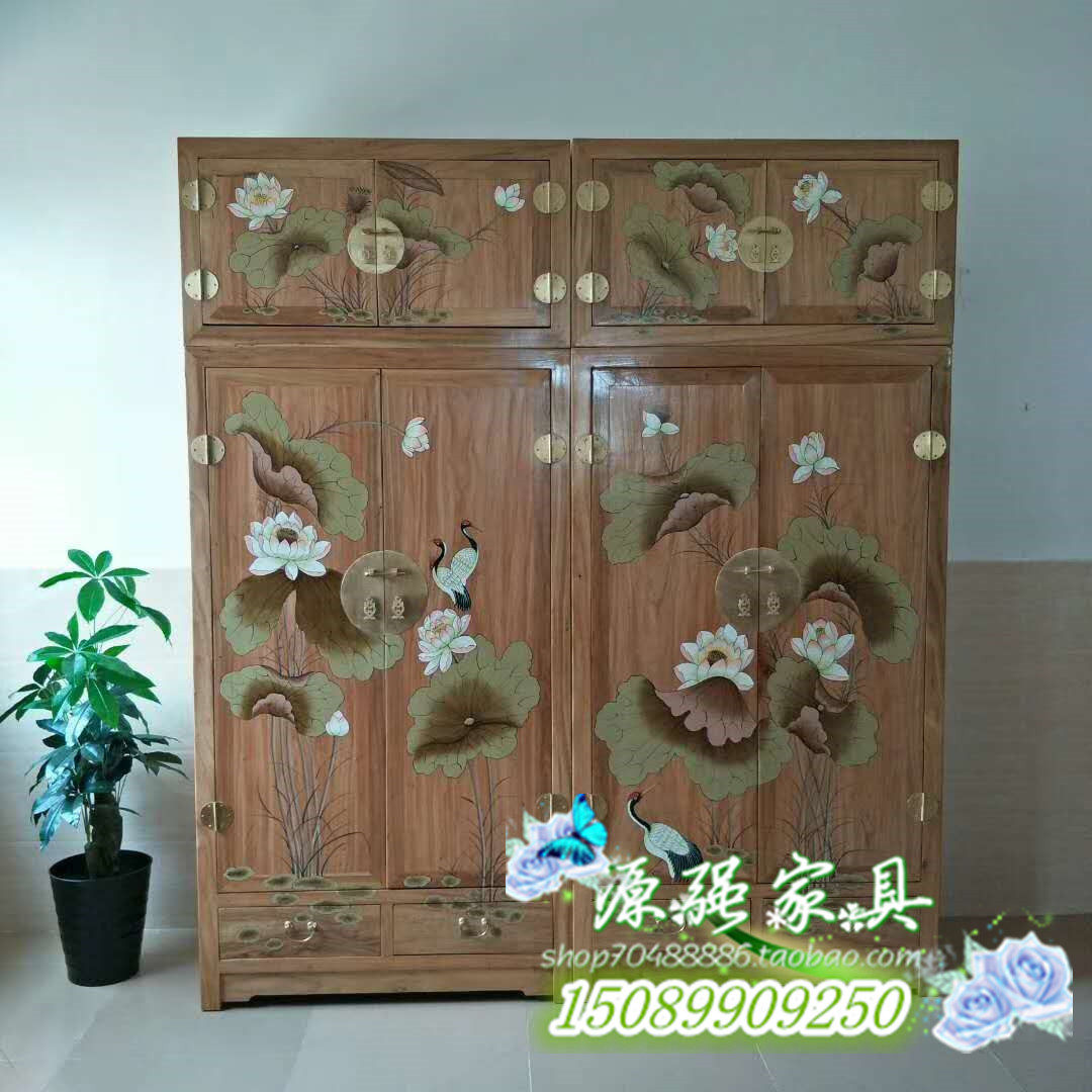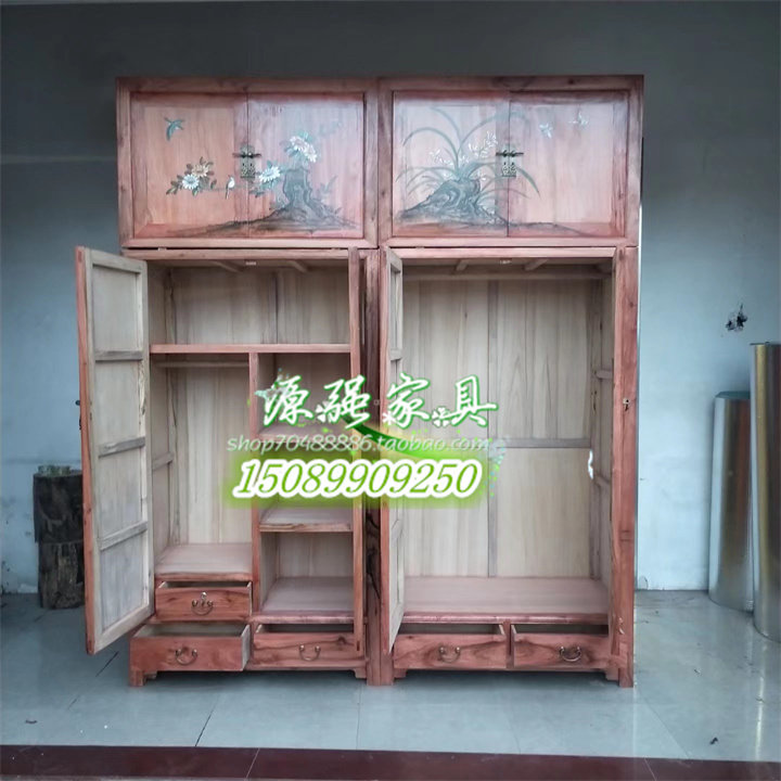 YQ018 old elm top box cabinet Chinese style solid wood top box wardrobe depicting gold carving wardrobe fragrance camphor wood wardrobe customization