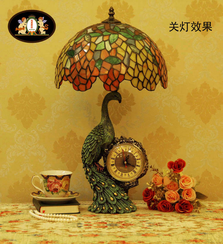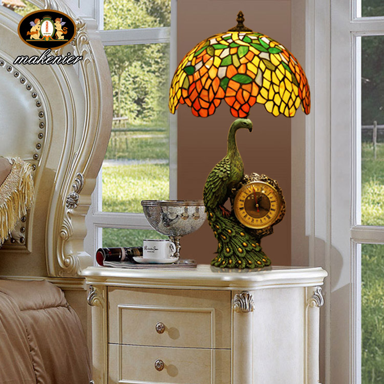 Baroque stained glass decoration table lamp Purple vine bedroom retro bedroom headlight study desk lighting