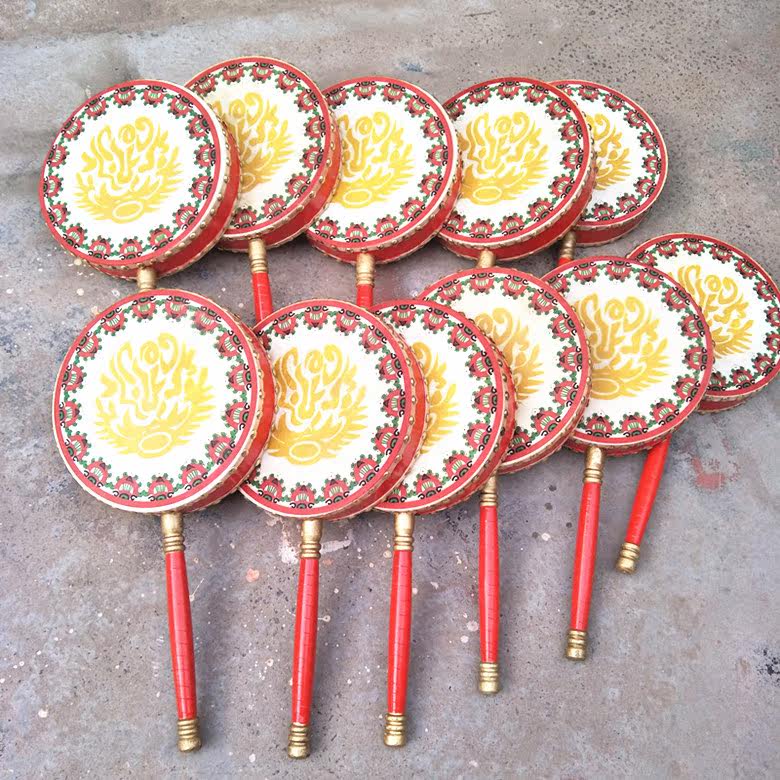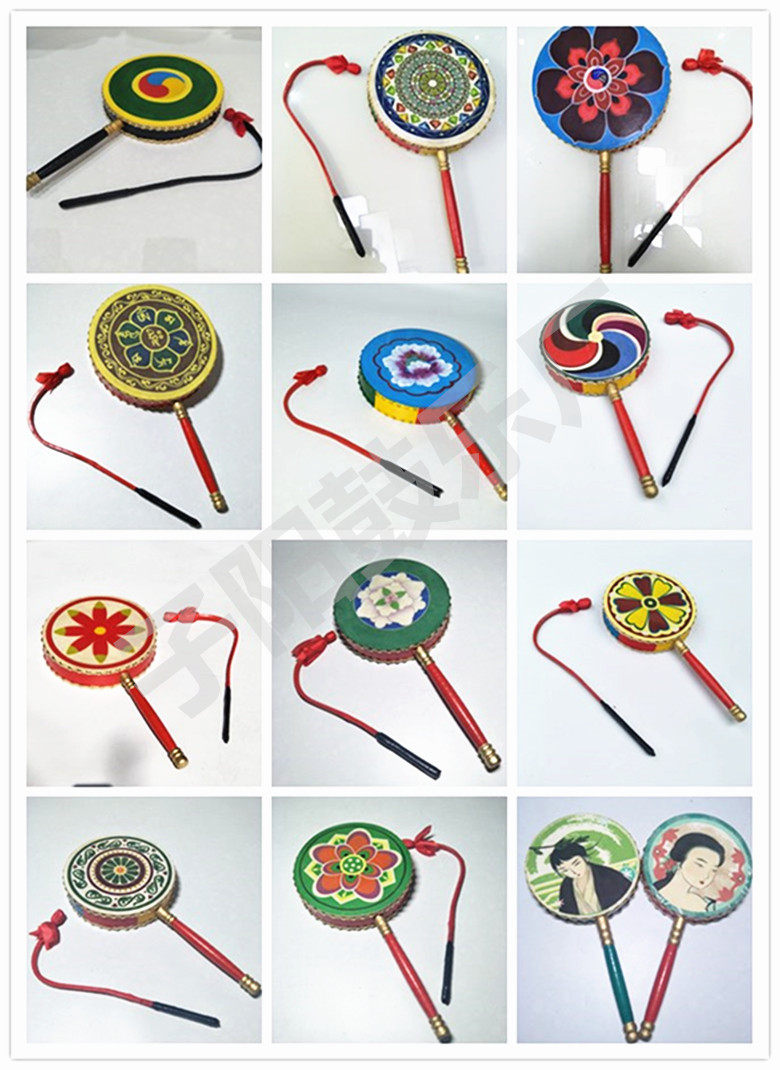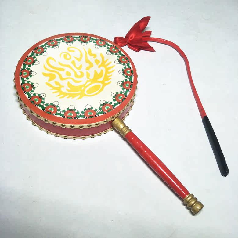 Adult cowhide l green painted Reba drum children dance with handle drum fan drum dance Tibetan tambourine