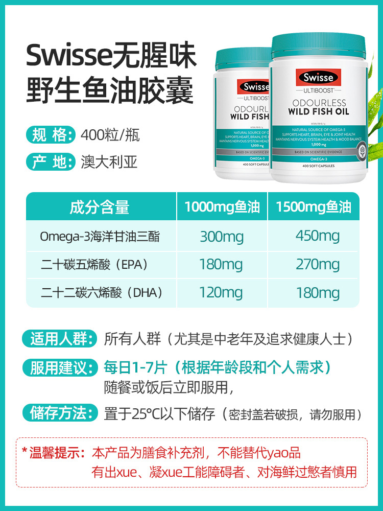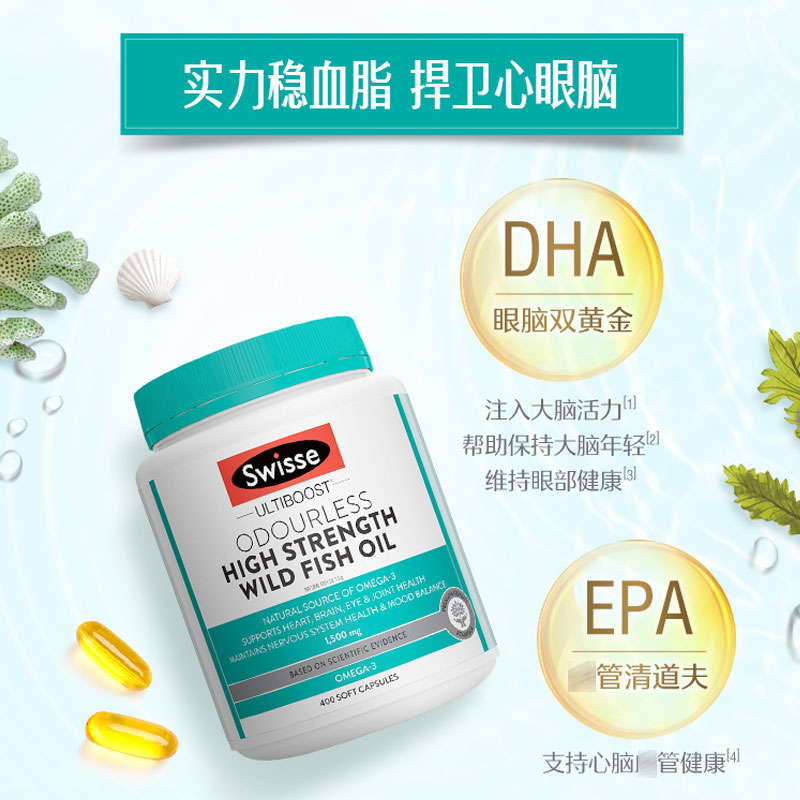 Australian imported Swisse deep-sea fish oil capsules dha middle-aged and elderly adults with 1500mg