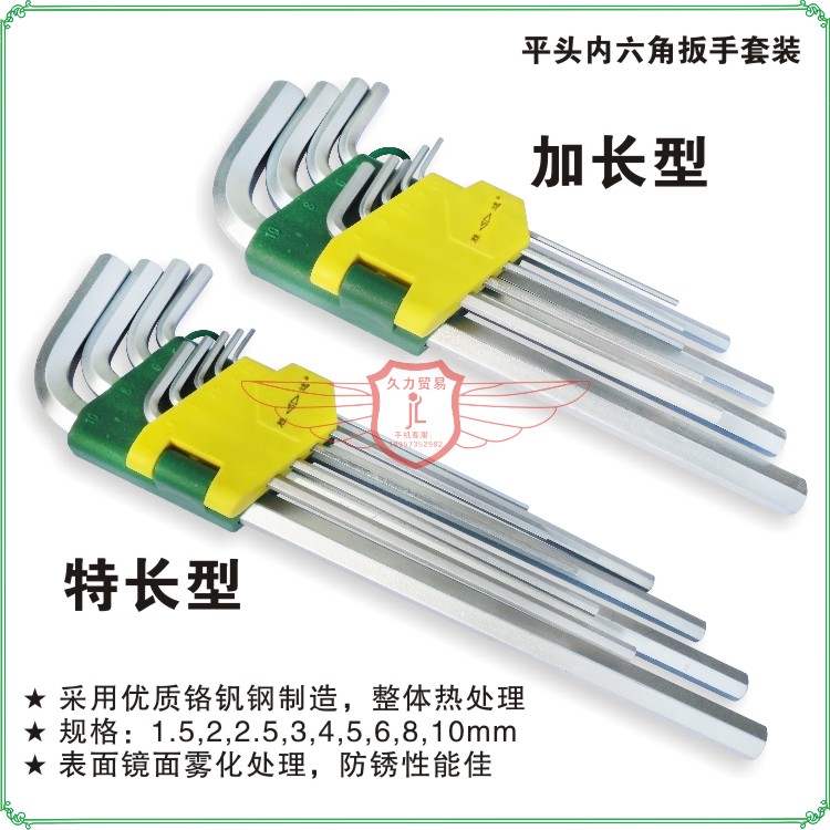 Shengda tool (chrome vanadium steel) 9 pieces of lengthened special length inner hexagonal flat head sub-light inner 6-angle wrench suit