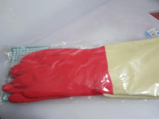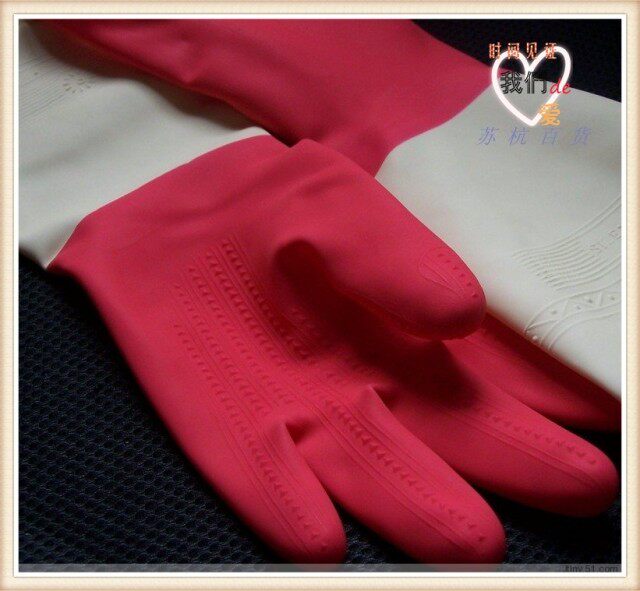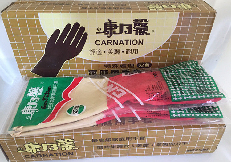 Carnation Family with bicolor leather gloves latex gloves cleaning gloves dishwashing clothes with rubber gloves