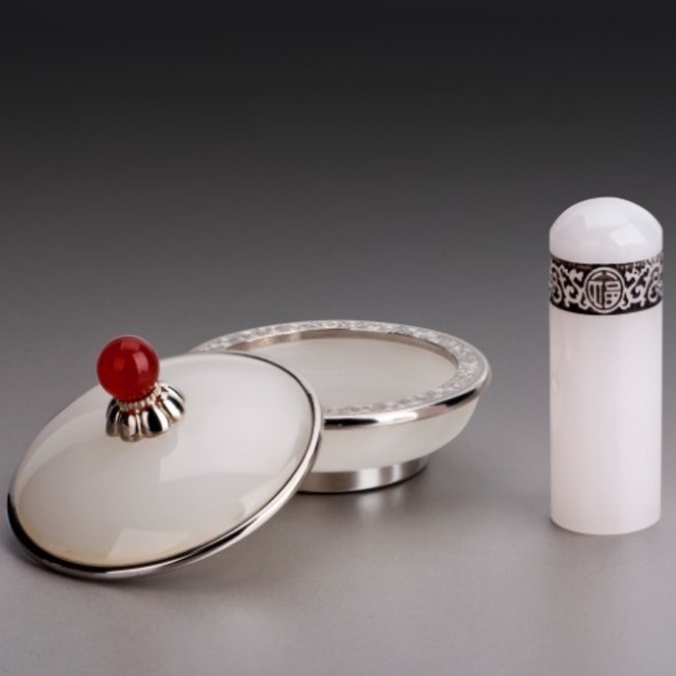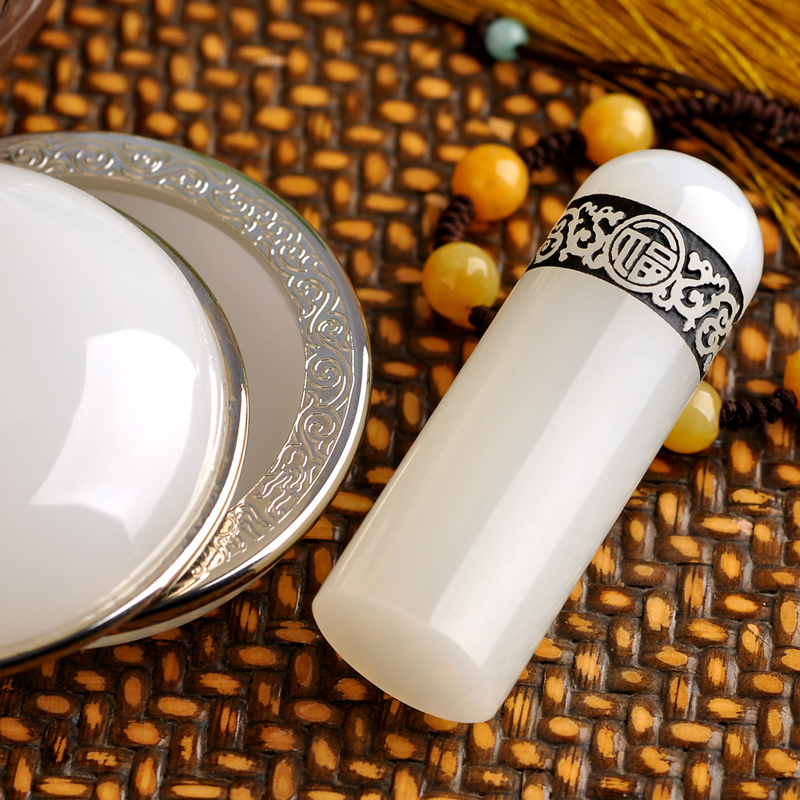 Second kill jade seal name calligraphy calligraphy Chinese painting hard pen round seal mud box Afghan white jade intellectual gift