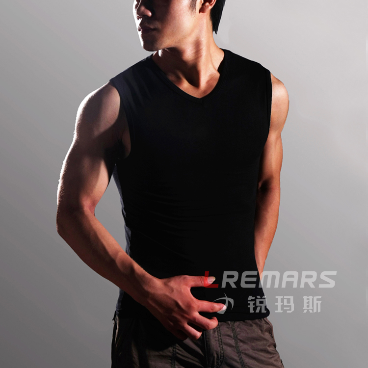LREMARS men's pure colour V collar sleeveless vests male fitness Leica high ammunition 02-6A sport tight vest man