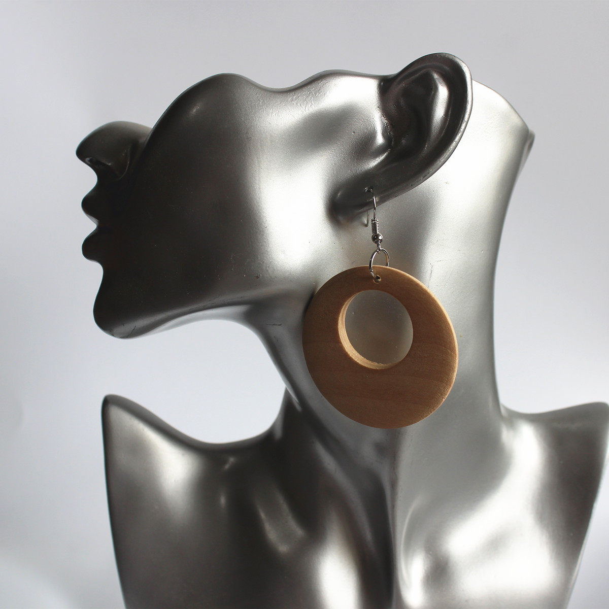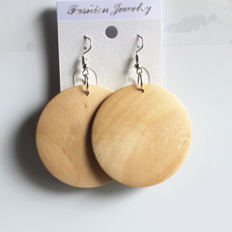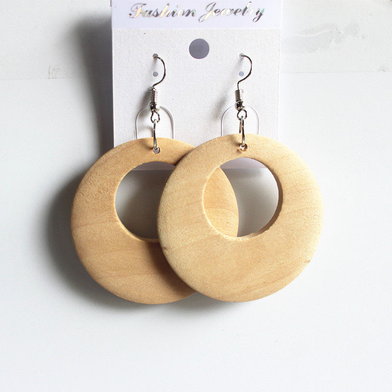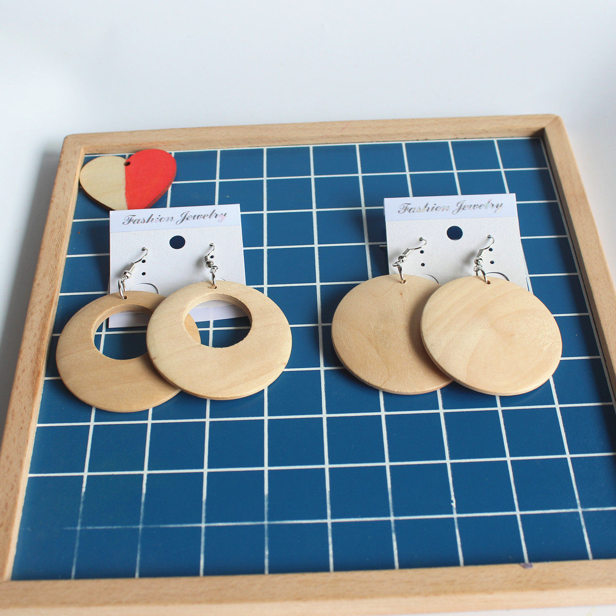 DIY Ornament Accessories Lacquer Art Color Painted Log Earrings Wood Tire Round Earrings Earrings 50mm