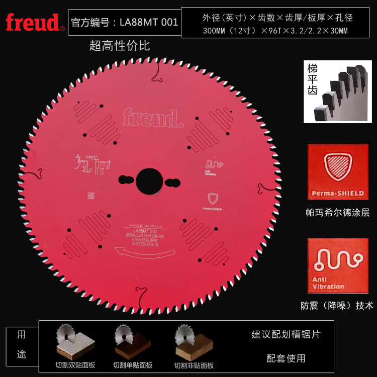 Original imported sharp invincible FREUD woodworking precision cutting board saw push table saw special alloy saw blade 12 inch 96 teeth