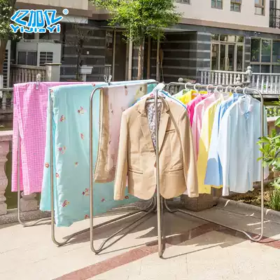 Outdoor floor stainless steel floor folding clothes rack Fan-shaped drying quilt rack Outdoor large balcony cool clothes rack