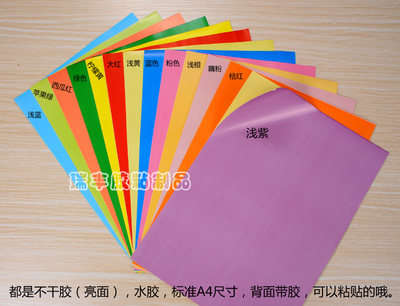 A4 color bright light noodle adhesive label printing paper Water rubber red yellow blue and green pink violet orange 14 color optional