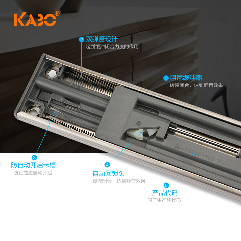 German KABO drawer slide stainless steel damping three-section guide rail drawer track ball silent buffer slide track